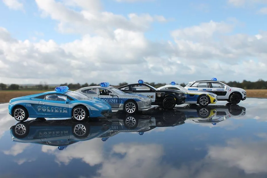 Le thème du coffret en lui même est assez original puisqu'il réunit les véhicules d'intervention policer de 4 pays (France, Allemagne, Italie, Etats-Unis) ainsi q'une version AMG fictive Police (inspiré d'une Show-Car "Polizei").