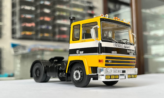 Aucune indication d'année pour ce Berliet, que nous estimons à 1979 d'après nos recherches, et certainement pas 1960 comme indiqué sur le site du distributeur (erreur reprise par nombre de revendeurs). En effet, ce camion transporteur de Renault Sport F1 semble tout droit être celui de l'année 1979, transportant les Renault F1 RS01, à l'aube des moteurs Turbo en Formule 1.